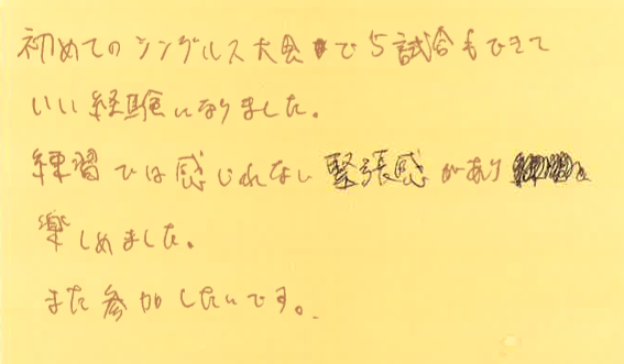 そして、充実したテニスができて、良かったです!