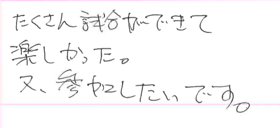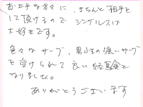 男性の強いサーブなど、色々なサーブを受けられて、良い経験になられたとのことで、良かったです!