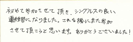 シングルスの良い練習になったとのことで、うれしいです!