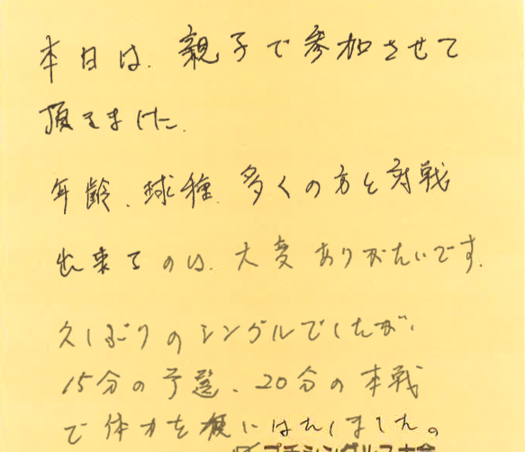 親子での参戦で色々な方との試合を楽しんで頂けて、良かったです!