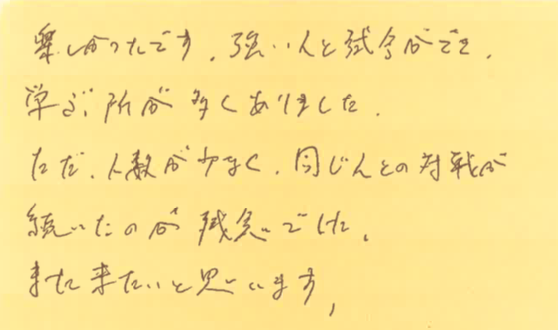 強い方との対戦で、学べるところが多くあったとのこと、ホント、そうなんですよね!!