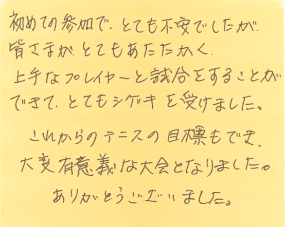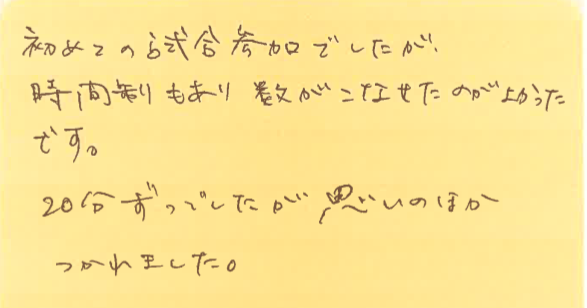 今回は、かなり遅くなってしまいましたが、3月19日の堺インドア大会に初めて参加された方の感想と私からのお返事をシェアさせていただきます!