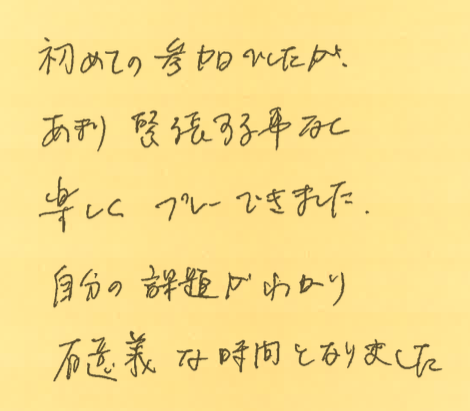 あまり緊張することなく楽しくプレーできたとのことで、素晴らしいです!!