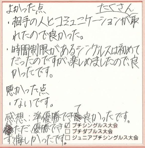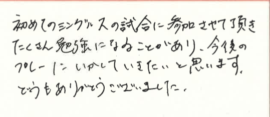 初めてのシングルスの試合にプチシングルス大会を選んでくださり、ありがとうございました!