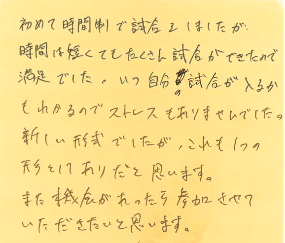 初めての時間制の試合を楽しんでいただけて、良かったです!