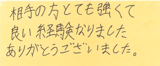 強い相手の方と対戦すると、負けて悔しい思いもしますが、色々勉強になりますね!
