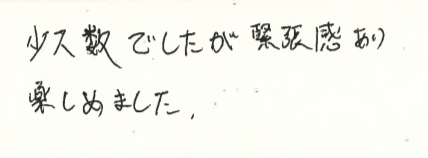 最初は緊張の中でしたが、最後のゲームでは楽しくプレーすることができたとのことで、良かったです!