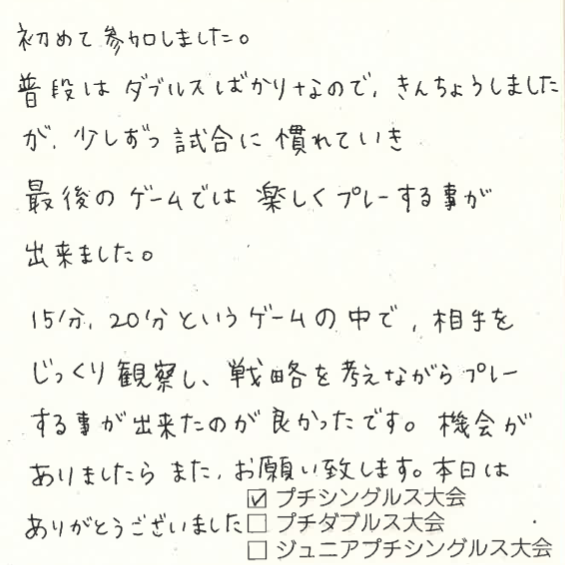 「シングルスはやっぱり楽しいです」・・・シンプルで大変うれしいコメントです!