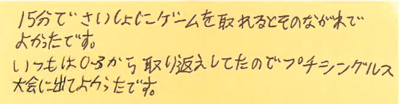 たくさん上手な方と対戦できて、勉強になったとのことで、良かったです!