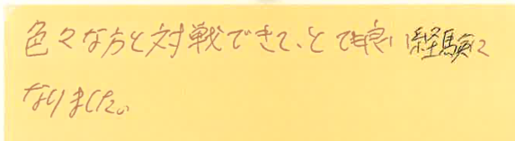 あと、色々な方との対戦で、良い経験ができて、うれしいです!
