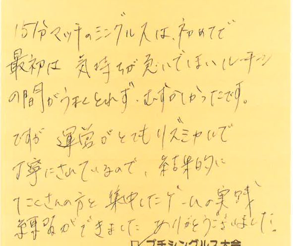 プチシングルス大会の杉下です!