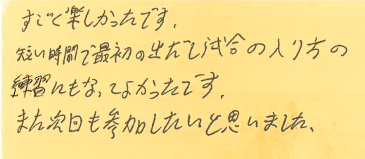 最初の出だしの練習になったとのことで、良かったです!