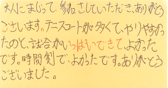 また知らない人とたくさん試合をするために、参加してくださいね!