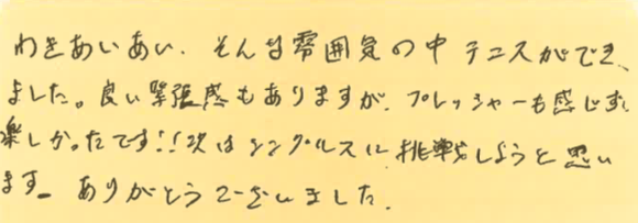「次は、シングルスに挑戦」とのことで、ご参加お待ちしております!