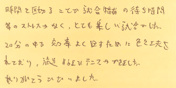 様々な方とたくさん試合を楽しんで頂けて、良かったです!