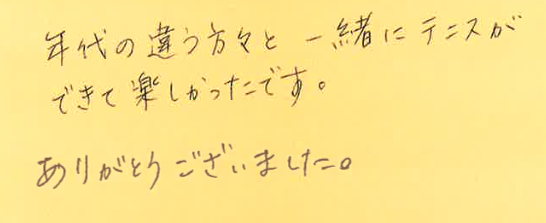 年代の違う方々と一緒にテニスを楽しんでいただき、嬉しいです!