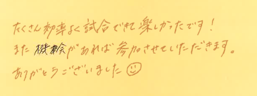 「たくさん効率よく試合できて楽しかった」と言って頂けて嬉しいです!