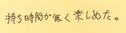 それはそうと、「時間的にはちょうど良かった」とのことで、良かったです!