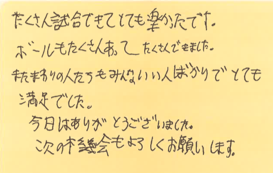 「待ち時間が無く楽しめた」とのことで、時間制の試合を楽しんで頂けて、嬉しいです!