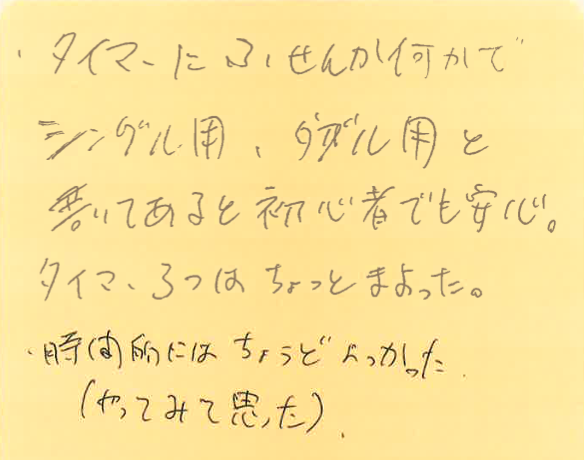 タイマーの件、今回のように、ダブルスとシングルスが入り乱れるとかなり複雑になってしまうんですよね。。。
