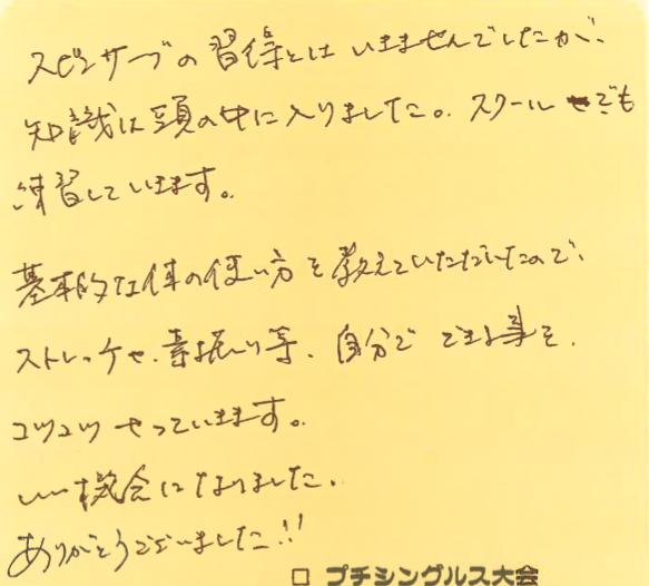 レッスンを受けて良かったと言ってもらえて、うれしいです!