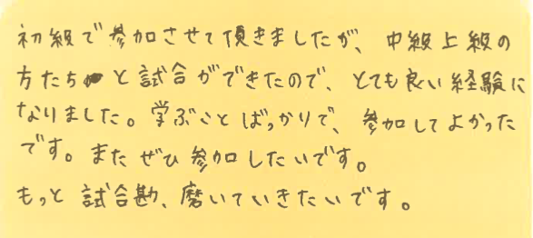中級・上級の方々とも対戦できて、良い経験になったとのことで、嬉しいです!