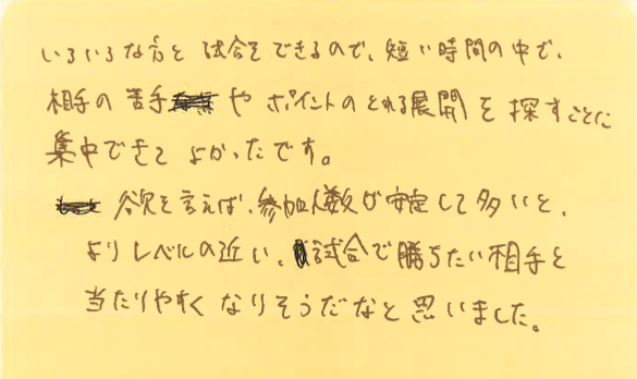 色々な方との試合で、ポイントを取れそうな展開を探すことに集中できたとのことで、良かったです!