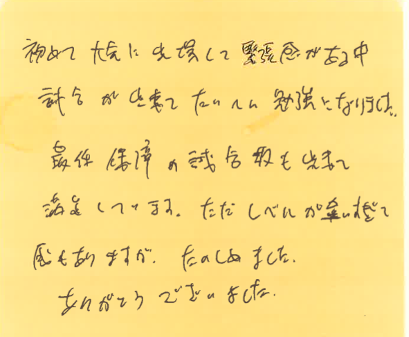 「初参加で緊張感のある中、試合ができて勉強になった」とのことで、大変嬉しいです!