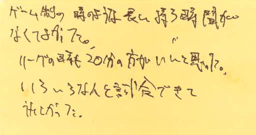 リーグ戦も20分が良いというご意見、ありがとうございます!