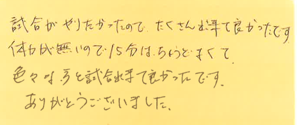 試合の中で課題が見つかったとのことで、次回の試合に向けて、練習がんばってくださいね!