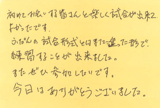 初対面の方々と、普段とは違った試合形式で試合を楽しんで頂けて、良かったです!