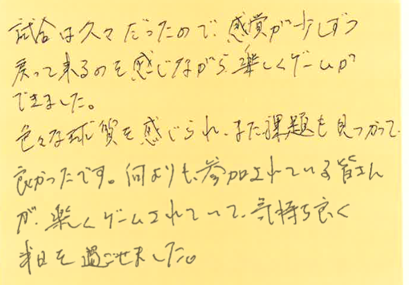 久しぶりの試合を楽しんで頂けて、良かったです!