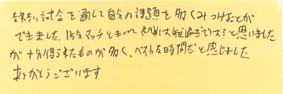 試合をとても楽しんで頂けたとのことで、嬉しいです!