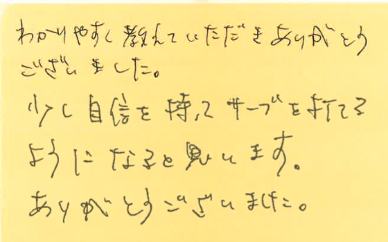 「少し自信を持ってサーブを打てるようになると思います」とのことで、とても嬉しいです!