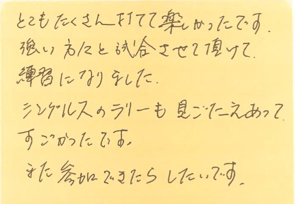 また、皆さんとコートでお会いできる日を楽しみにしております!!