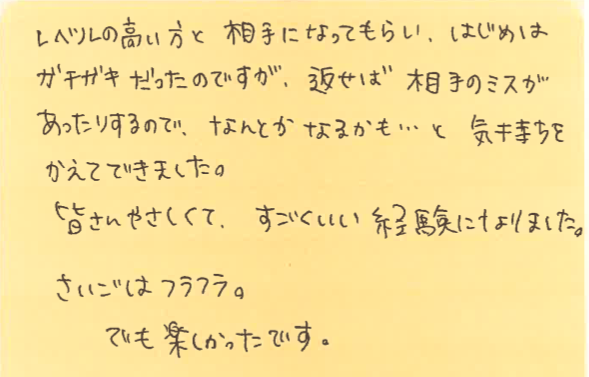 今回は、9月11日の堺インドア大会に初めて参加された方の感想と私からのお返事をシェアさせていただきます!