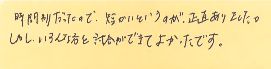 時間制なので、多少物足りなさもあったかもしれませんが、色々な方とたくさんの試合を楽しんで頂けて、良かったです!