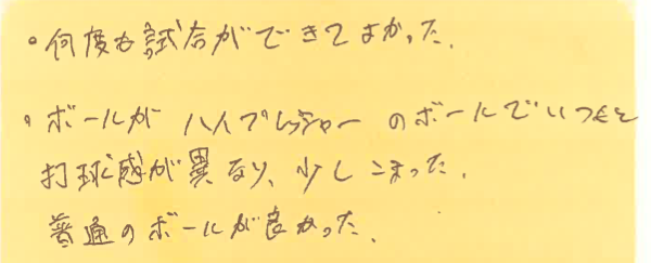 ですので、他の大会に行ったとしても、ニューボールを使うようでしたら、同じように感じるはずですので、逆にニューボールに慣れていただく機会として、プチシングルス大会を活用していただけたらと思います。