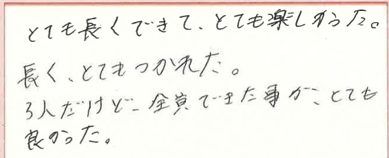 「とても長くできて、とても楽しかった」とおっしゃって頂けて、嬉しいです!