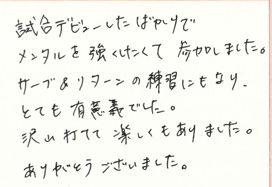 試合の緊張感も味わっていただき、メンタルも鍛えられましたね!