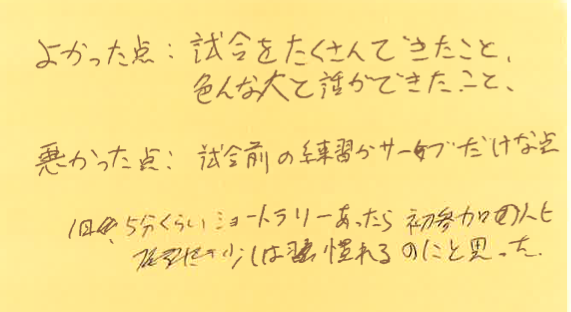 試合前の練習がサーブだけだった点がご不満だったとのこと、よくわかります。