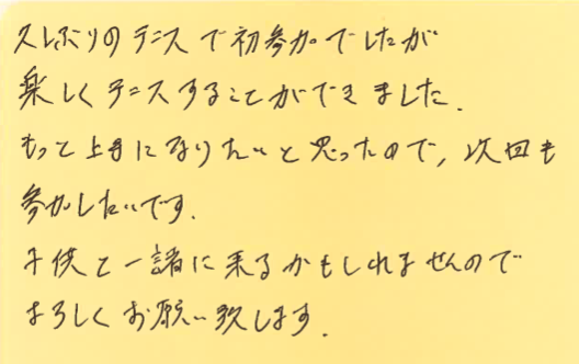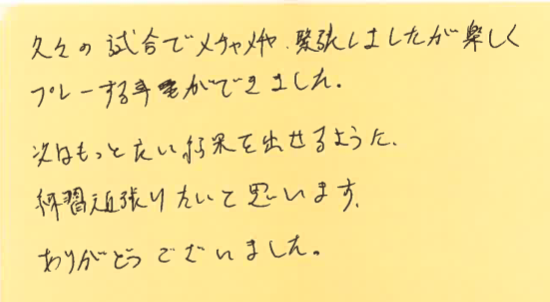 久々の試合ですと緊張すると思いますが、楽しんで頂けて良かったです!