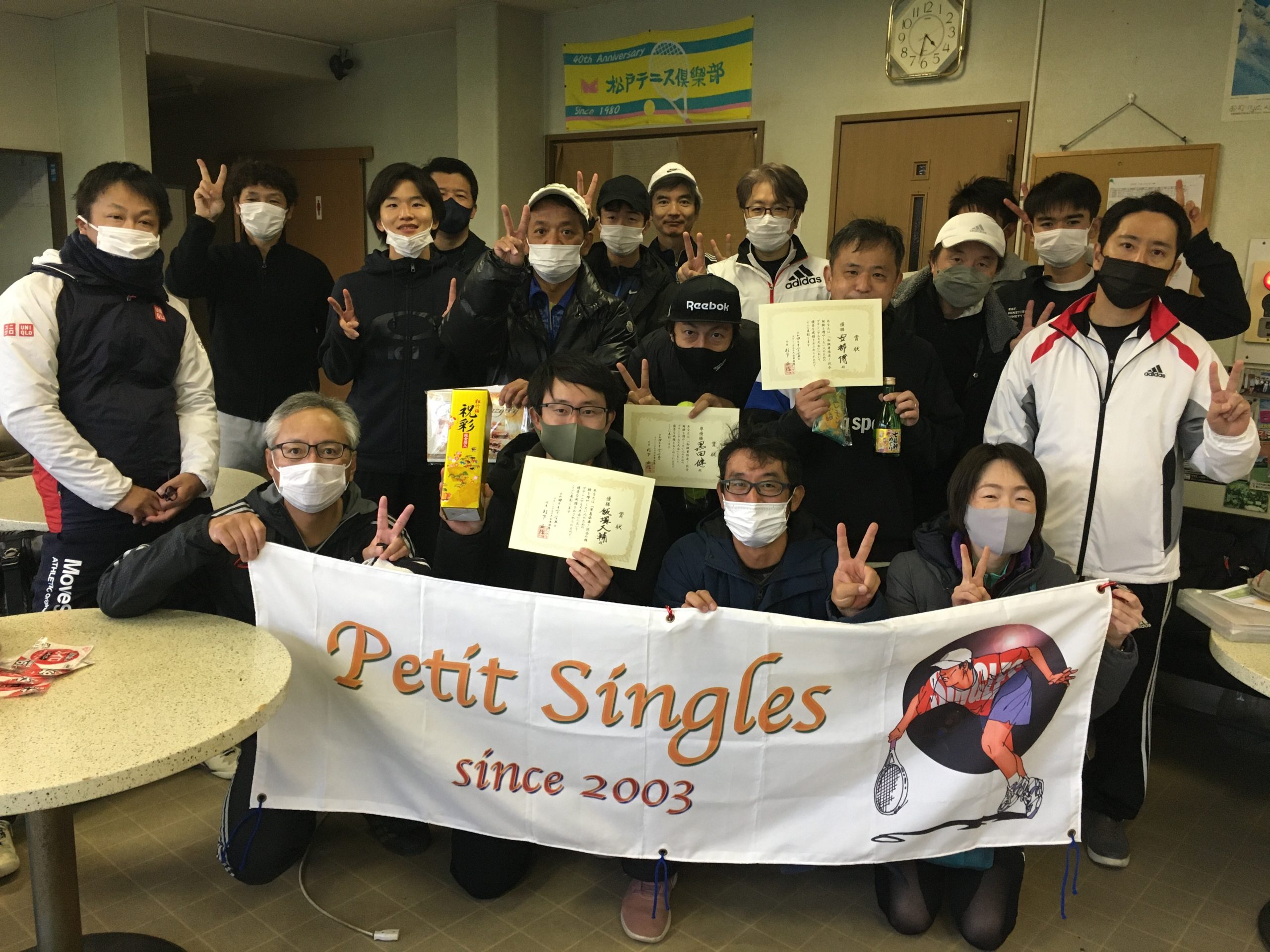この日は、ダブルスのペアの方もいらっしゃったので、各クラス優勝の方、全員に金箔入りの日本酒をお持ち帰りいただきました!