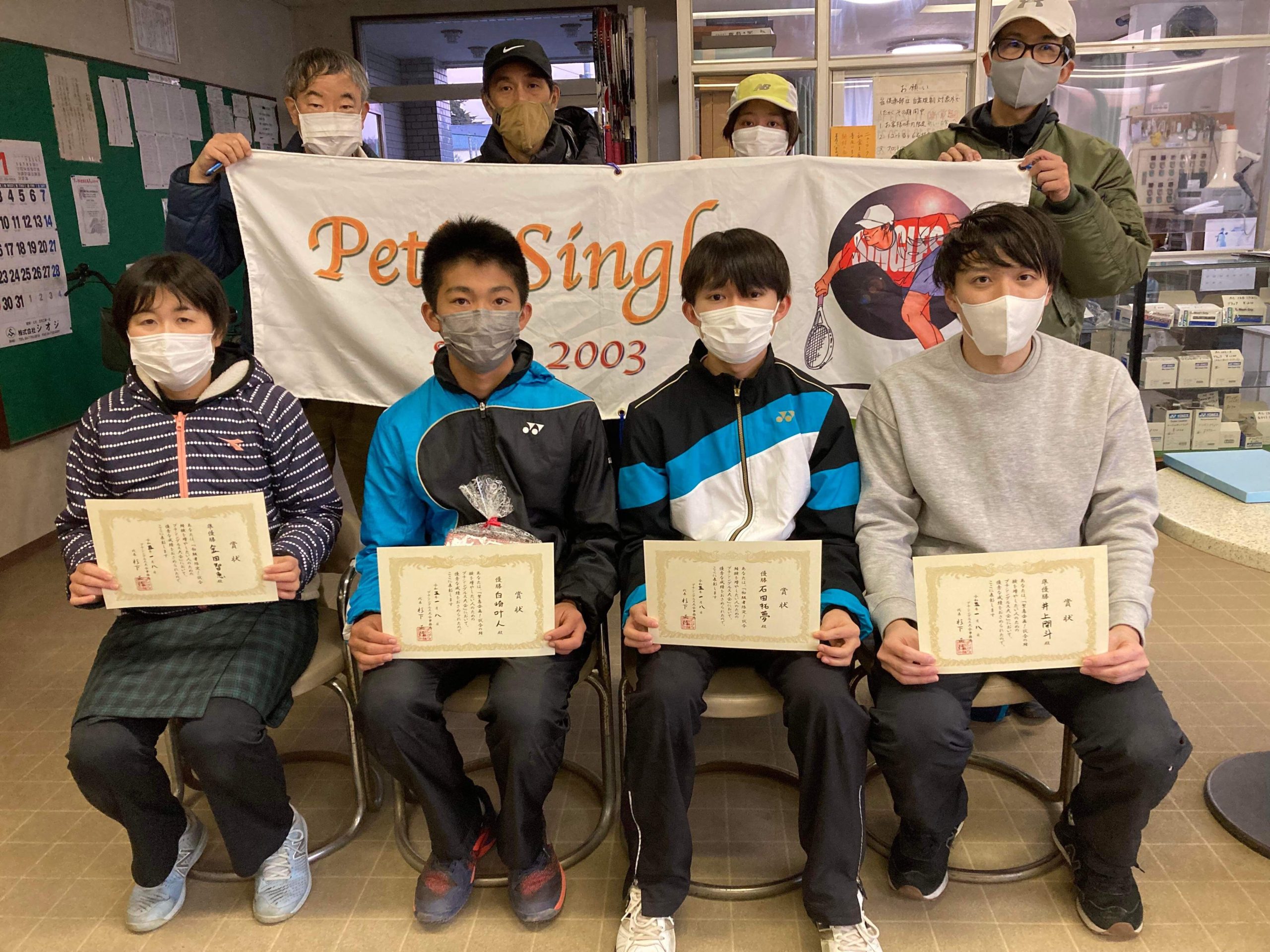 なお、シングルスの優勝は、松田選手、ダブルスの優勝は、山川選手・村岡選手組でした!