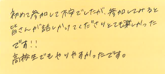 初めて参加された方が、大会を通して何を感じたのか?特に初めて参加しようとしている方の参考にしていただけたらと思います。