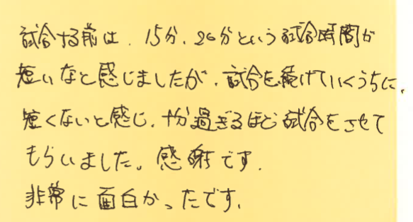 初めて参加された方が、大会を通して何を感じたのか?特に初めて参加しようとしている方の参考にしていただけたらと思います。