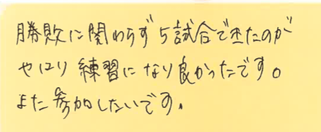 初めて参加された方が、大会を通して何を感じたのか?特に初めて参加しようとしている方の参考にしていただけたらと思います。