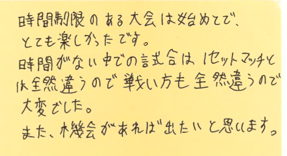 プチシングルス大会の杉下です!