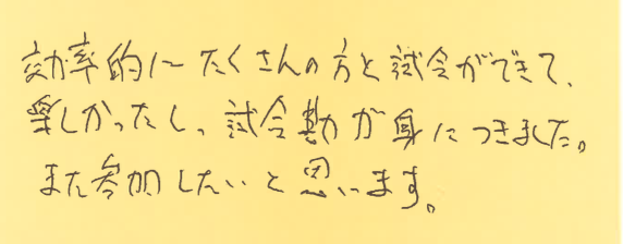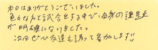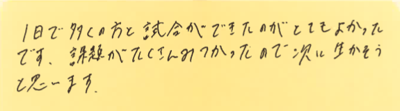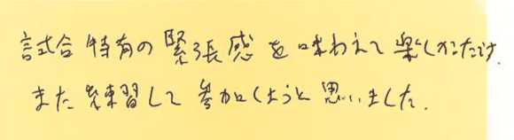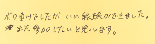 初めて参加された方が、大会を通して何を感じたのか?特に初めて参加しようとしている方の参考にしていただけたらと思います。