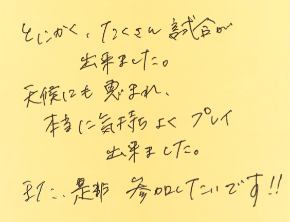また、皆さんとコートでお会いできる日を楽しみにしております!!